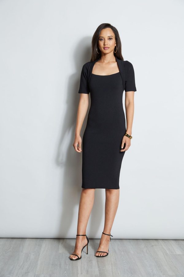 - Heavyweight Short Sleeve Bodycon Contour Neck Knit Dress