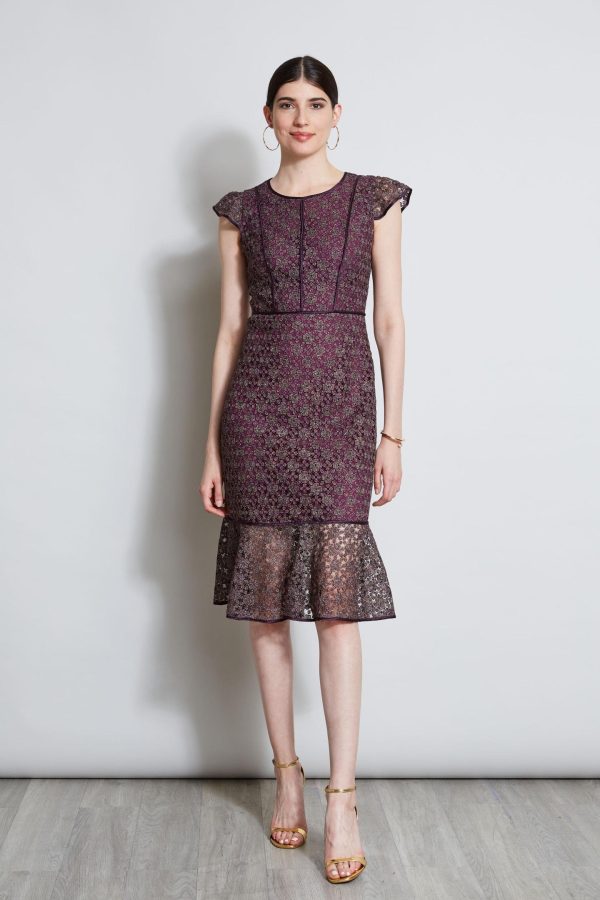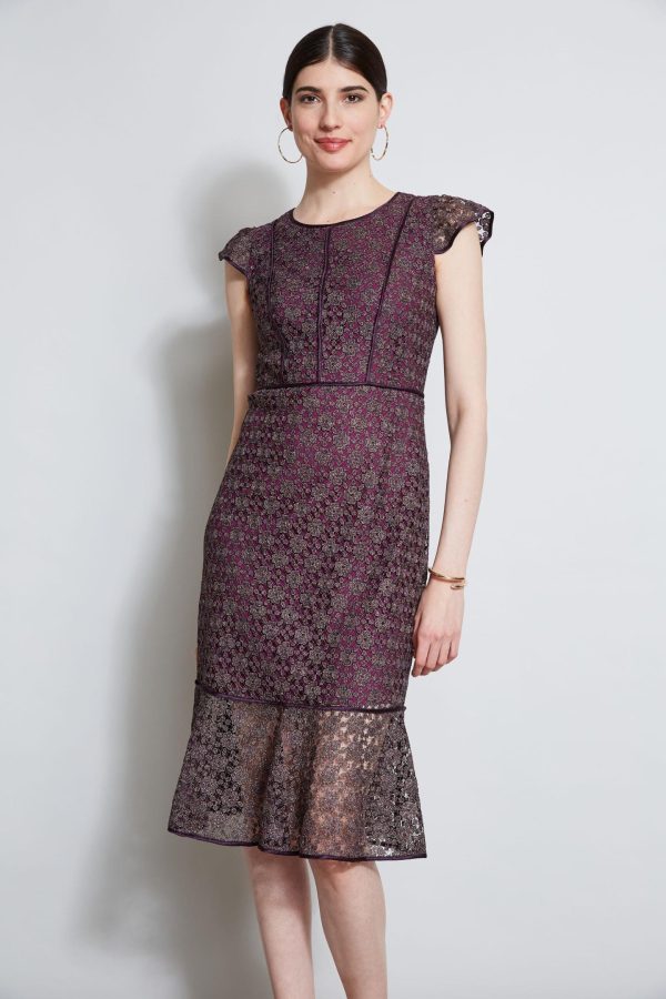 Midi Dresses | Women Elie Tahari Lace Flutter Sleeve Dress Plum