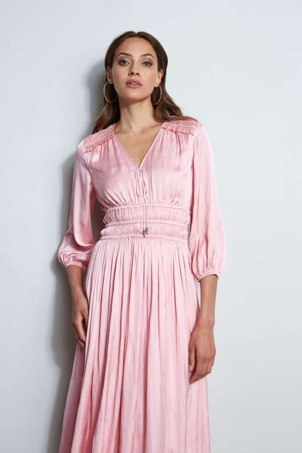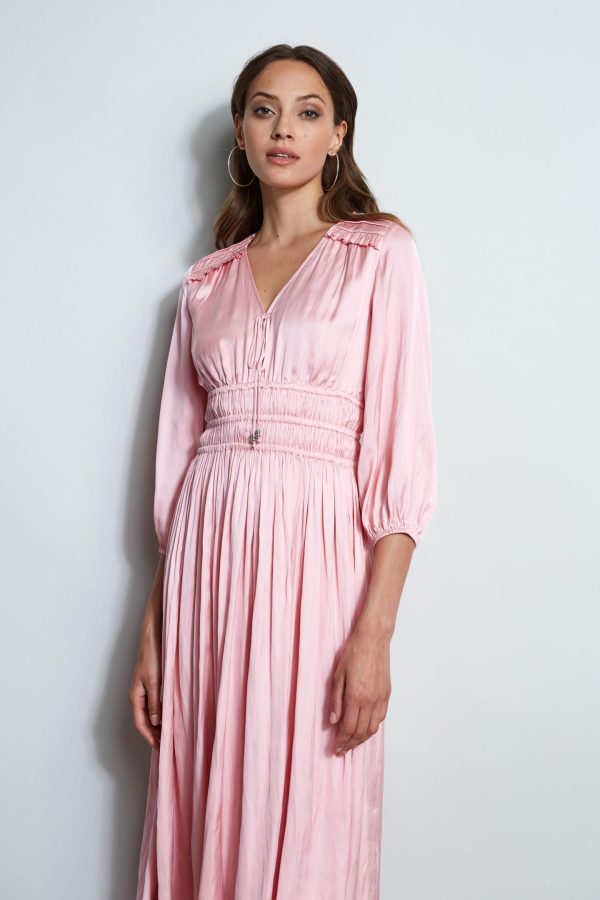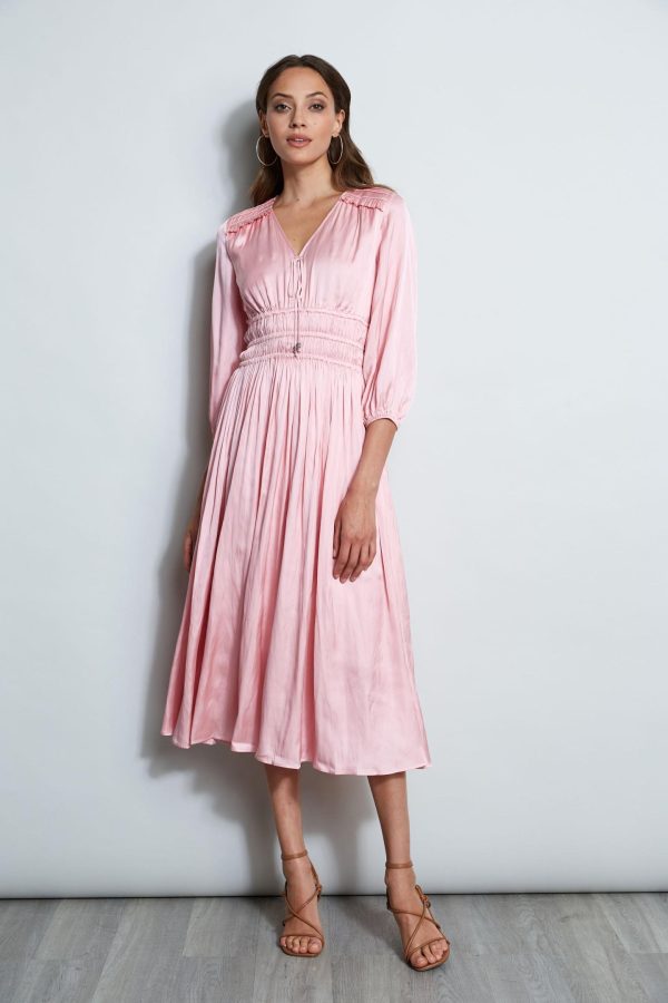 It’s all in the details. Romantic & feminine, our midi dress features pleat detailing throughout & a curved hemline. With its long blouson sleeves & v-neckline, this style is an effortless one & done.