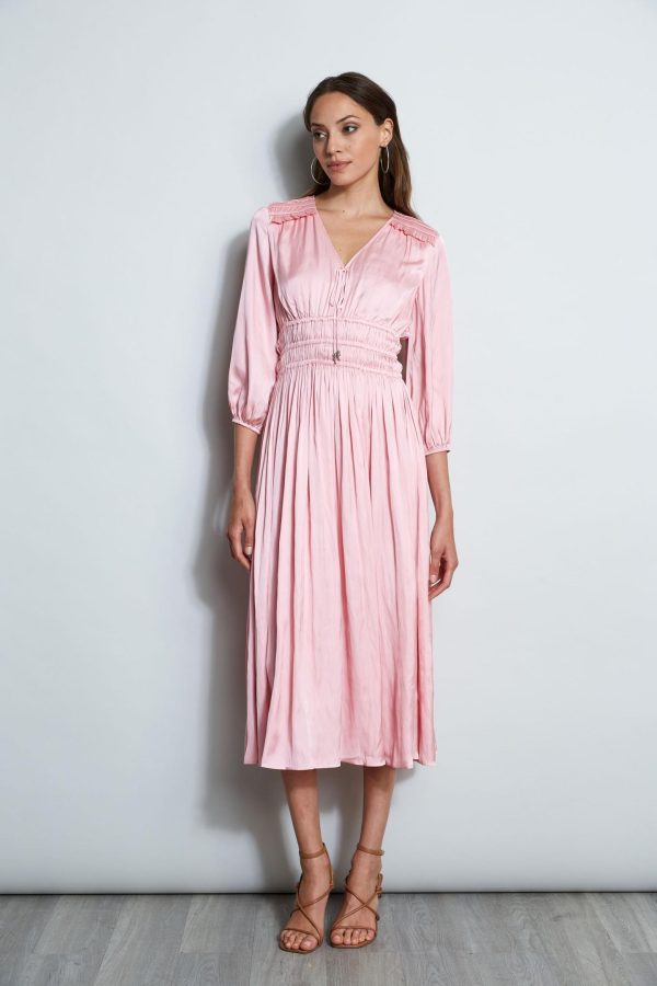 - Long Sleeve V-Neck Flare Dress with Smocking Detail