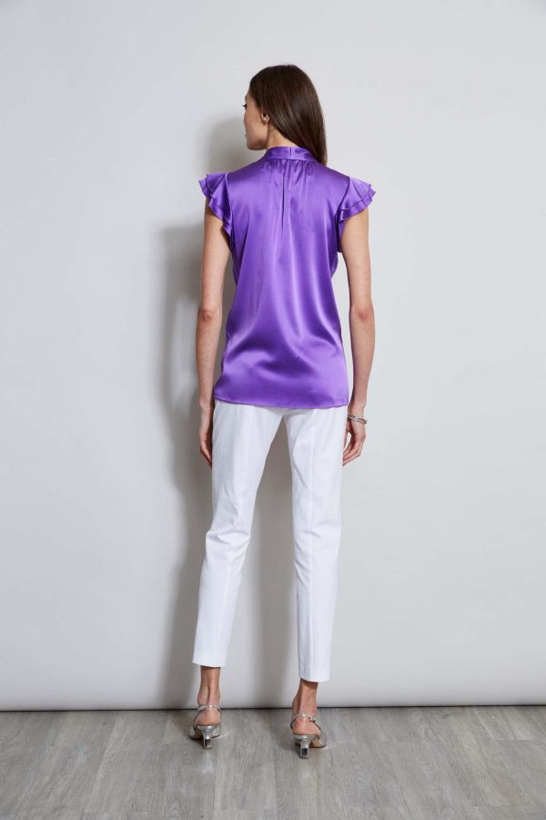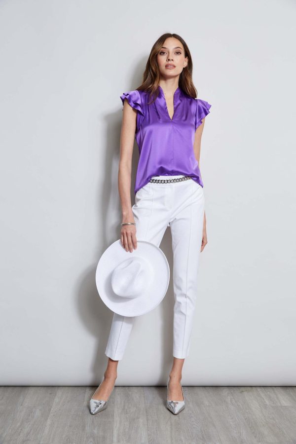 The soft flutter sleeves lend a femme twist to this luxe Stretch Silk Satin top. With its contour pleat detail neckline, it is perfect for layering with your favorite blazer or wearing on its own.