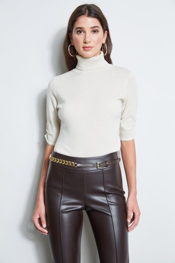 Tops | Women Elie Tahari Short Sleeve Cashmere Turtleneck Sweater Buff Melange