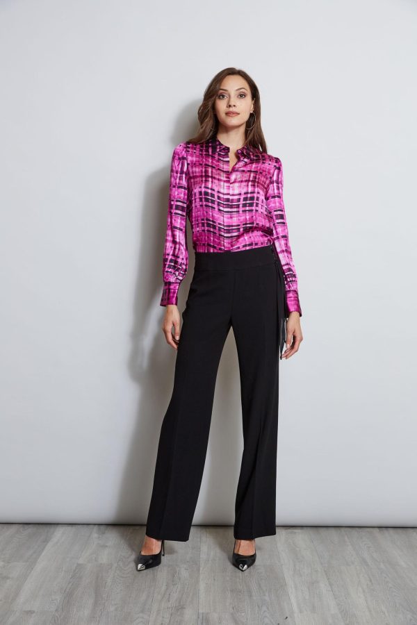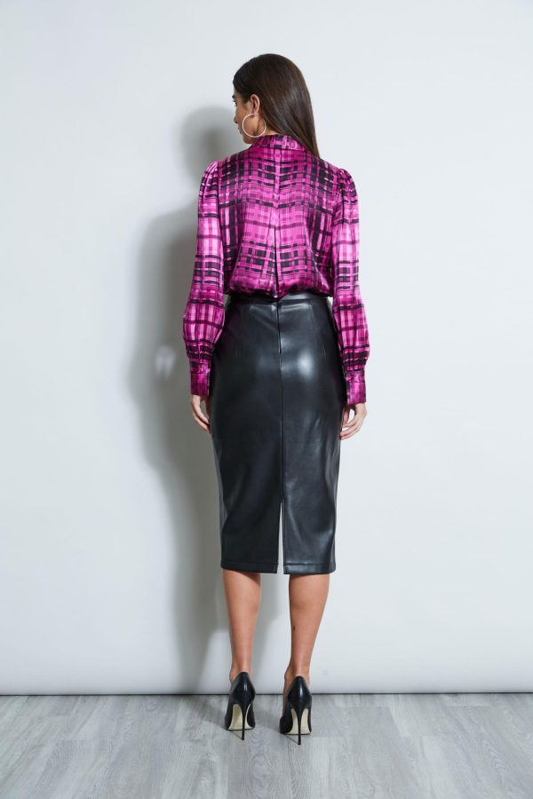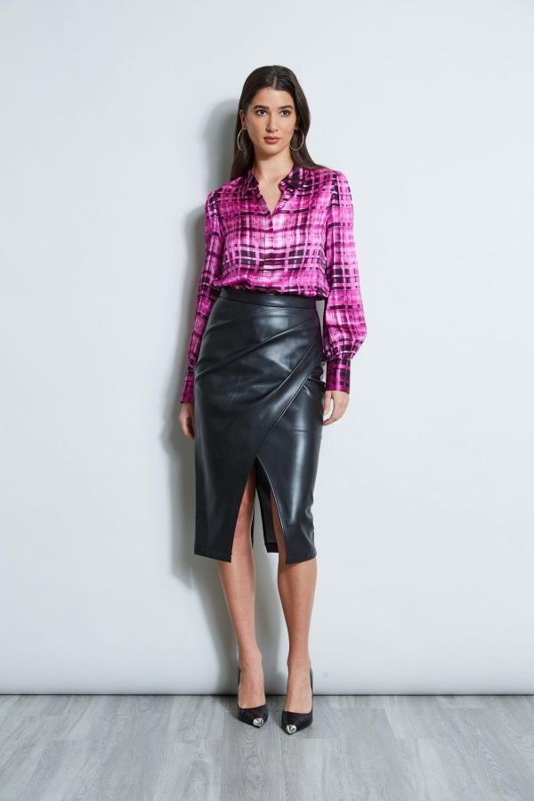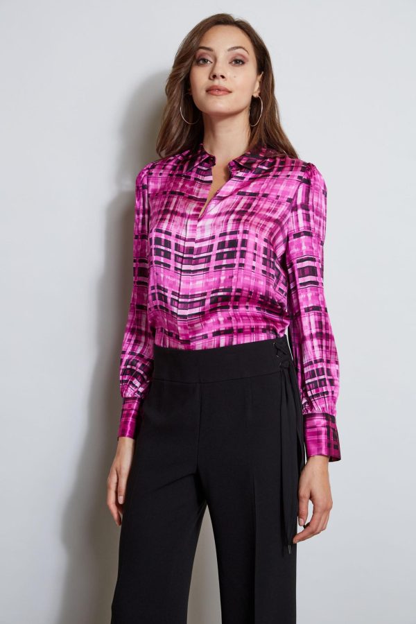 Tops | Women Elie Tahari Silk Satin Bauhaus Plaid Shirt Boysenberry
