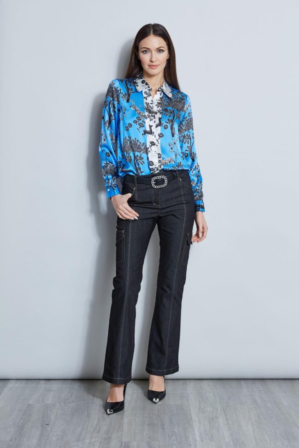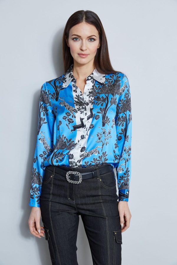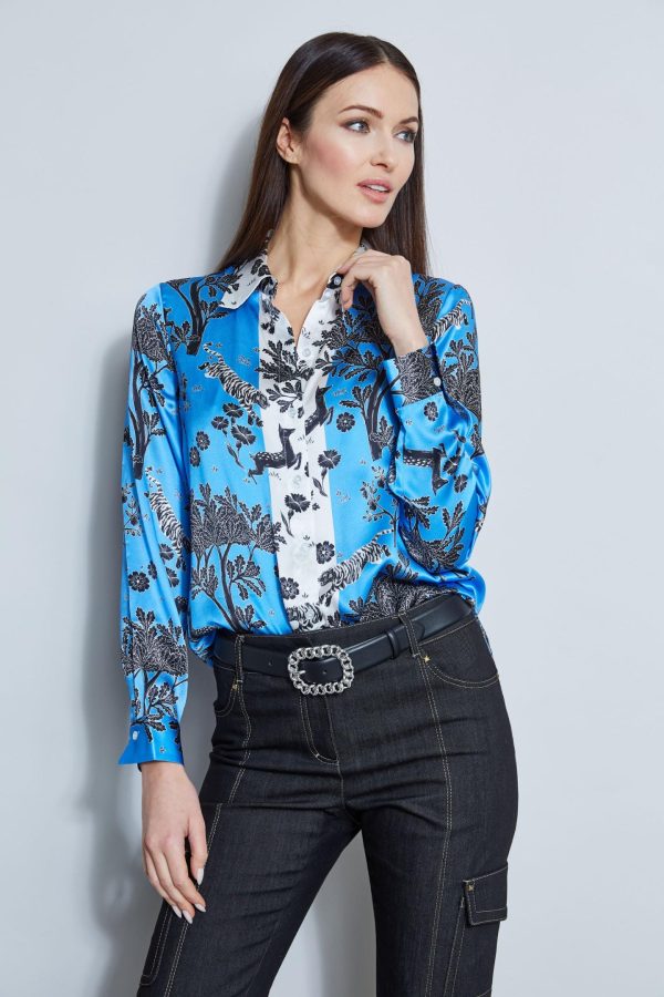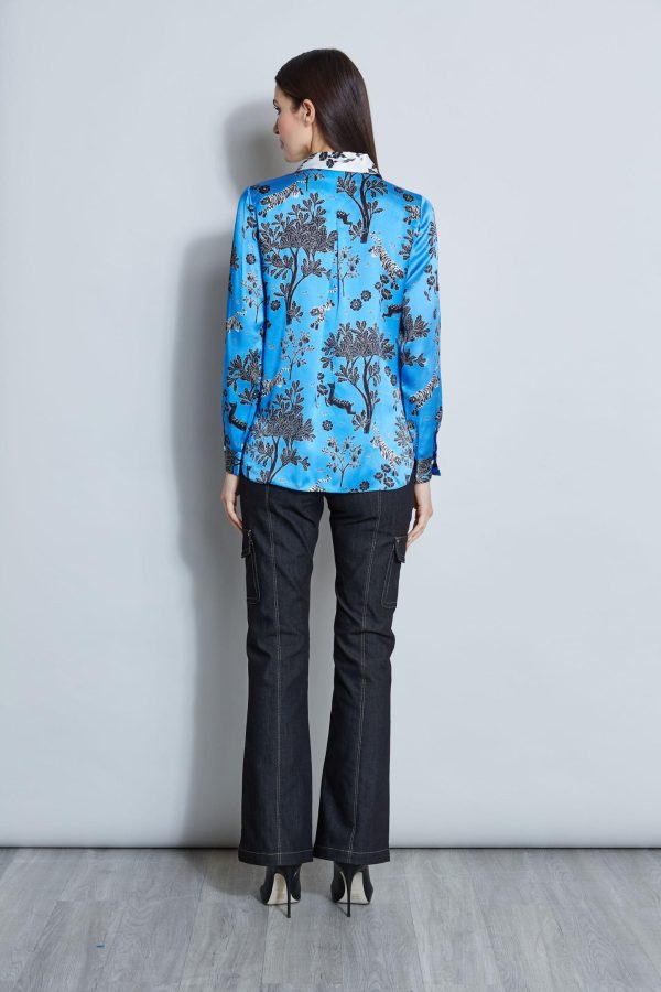 Tops | Women Elie Tahari Silk Satin Mystic Safari Shirt Multi