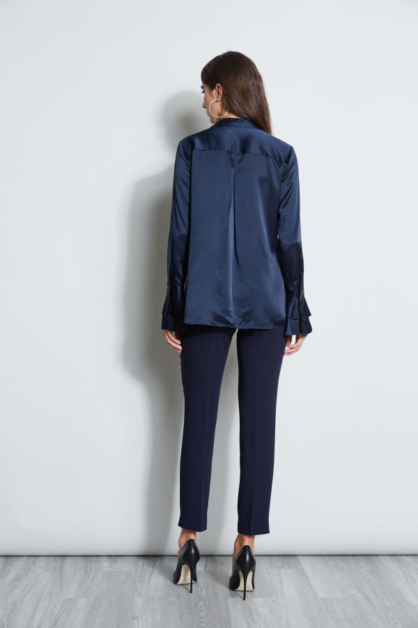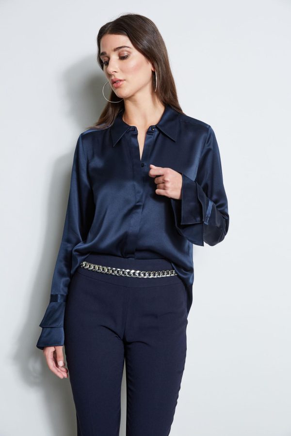 Nothing compares to the chic factor and luxe patina of our Silk Satin shirt. Its classic button-down style features a hidden placket & tiered ruffle cuffs. Perfect for layering under a blazer or wearing on its own- you will live in this shirt all season long.
